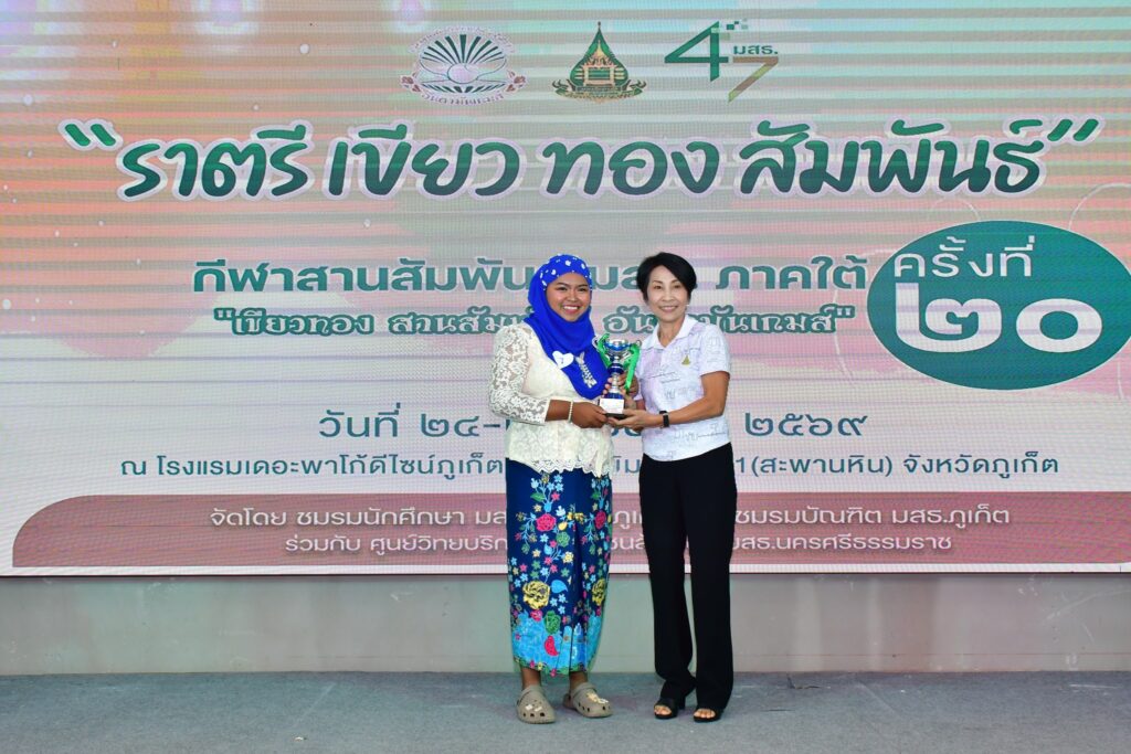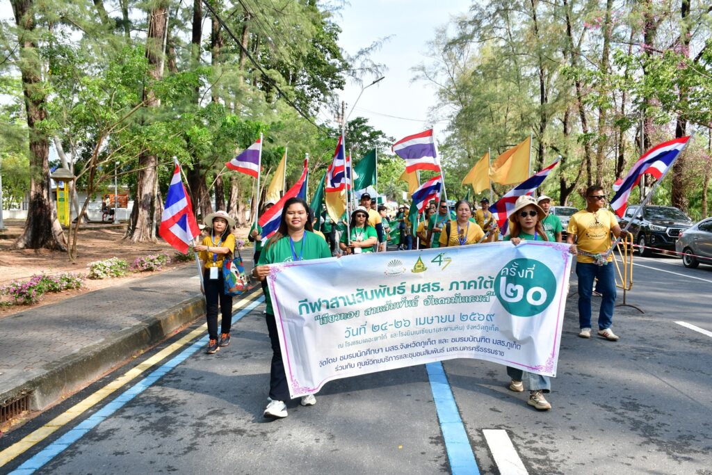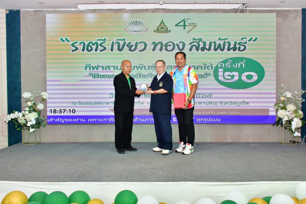 เมื่อวันที่ 24-26 เมษายน 2569 ชมรมนักศึกษา มสธ.จังหวัดภูเก็ต และชมรมบัณฑิต มสธ. ภูเก็ต ร่วมกับศูนย์วิทยบริการและชุมชนสัมพันธ์ มสธ.นครศรีธรรมราช จัดโครงการกีฬาสานสัมพันธ์ มสธ.ภาคใต้ (ครั้งที่ 20) “เขียวทอง สานสัมพันธ์ อันดามันเกมส์” ณ โรงแรมเดอะพาโก้ภูเก็ต และโรงยิมเนเซียม 1 (สะพานหิน) อำเภอเมือง จังหวัดภูเก็ต โดยในคืนวันที่ 25 เมษายน 2569 นายนริส สิงหวังชา นายกสมาคมสุโขทัยธรรมาธิราชฯ ร่วมเป็นประธานในงานราตรีเขียวทองสัมพันธ์ และมอบเงินสนับสนุนเสื้อกีฬาให้จำนวนหนึ่ง พร้อมทั้งคณะกรรมการบริหารสมาคมสุโขทัยธรรมาธิราชฯ เข้าร่วมงานดังกล่าว