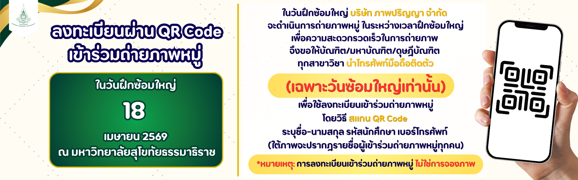 ข่าวประชาสัมพันธ์ กิจกรรม งานประเพณีสงกรานต์งานประเพณีสงกรานต์อนุรักษ์วัฒนธรรมไทย ประจำปี 2569งานประเพณีสงกรานต์ดูรายละเอียดเพิ่มเติม ทำบุญเลี้ยงพระสโมสรสุโขทัยธรรมาธิราชดูรายละเอียดเพิ่มเติมกีฬาบุคลากร (กีฬาสี) “เขียว – ทองสัมพันธ์” ประจำปี 2569ดูรายละเอียดเพิ่มเติม ดูทั้งหมด